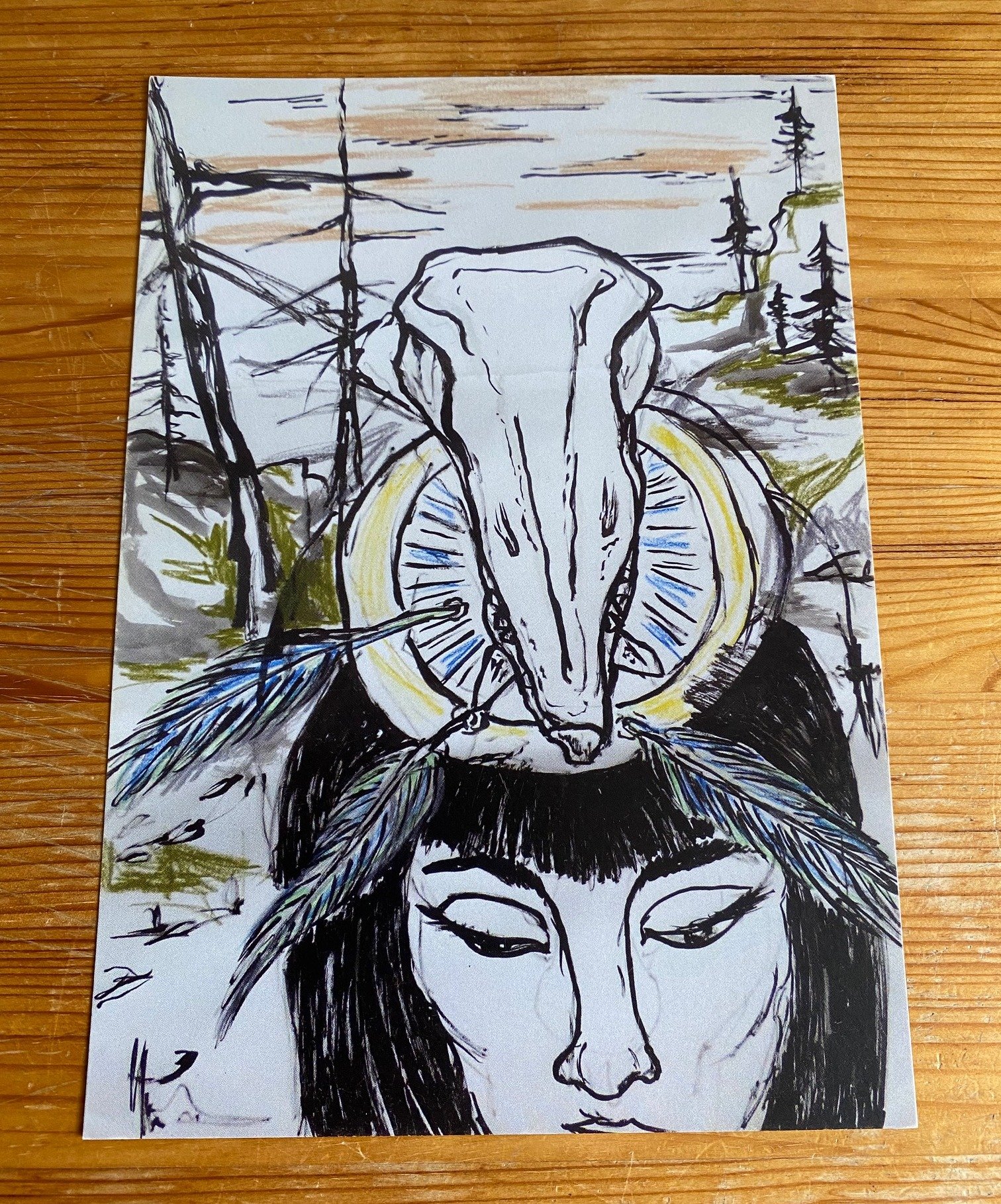 Das Originalwerk "Me an Sceleton" ist Teil meiner Diplomarbeiten im Jahr 2016. Es ist eine Tuschezeichnung mit Ölkreide auf Papier im Format 100x70cm . Inhaltliche Hintergrundinfos im Instagramaccount @dentroelbosque